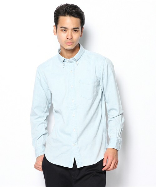 417 EDIFICE(エディフィス)のインディゴツイル ボタンダウンシャツです。正規品。完売商品。定価:8.925円。カラー:サックスブルー。細番手の綺麗な糸で織り上げたロープ染めインディゴツイルです。ミドルウエイトのカジュアルな印象のデニム素材より上品な仕上がりになります。製品にバイオブリーチ加工を施して色落ちさせました。型はオックスB.D.と同じものです。小ぶりな襟で立ててきても収まりの良いバランスに仕上がっています。新品で購入後に数回着用しました。中古ですが状態は良いと思います。これからの季節に大活躍してくれると思います!モニターの設定等で色が若干異なって見える場合がございます。また、色落ち加工されている商品ですので、予めご了承ください。
