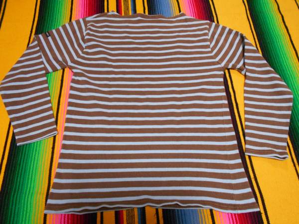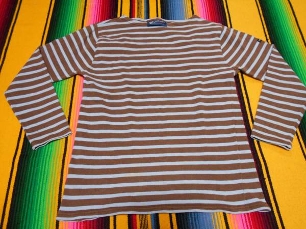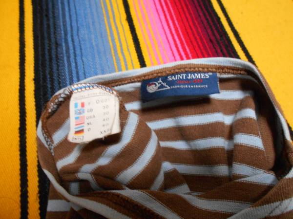 SAINT JAMES 伝統、オリジナルのタイト目なシルエットと絶妙なネックのカット、風合いある発色の チョコミント のボーダー柄がとても良い感じの定番アイテム