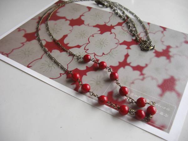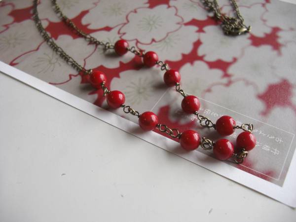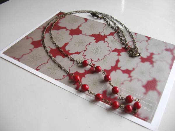 大人色を集めて・・シリーズです♪ベネチアの恋・・シックな珊瑚のネックレスです♪7ミリ位の珊瑚の丸玉のネックレスはデザインチェーンを合わせました♪長さは全長102センチ位で調節自由です♪お揃いのネックレスやブレスレットも出品しています♪ハンドメイドをご理解いただいてノークレーム・ノーリターンでお願いします♪