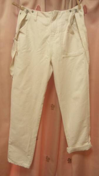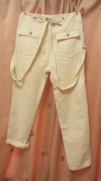 ◆少しルーズなラインが可愛いのでロールアップでの着用も♪ポケットのステッチや肩ヒモが可愛いナチュラルパンツ