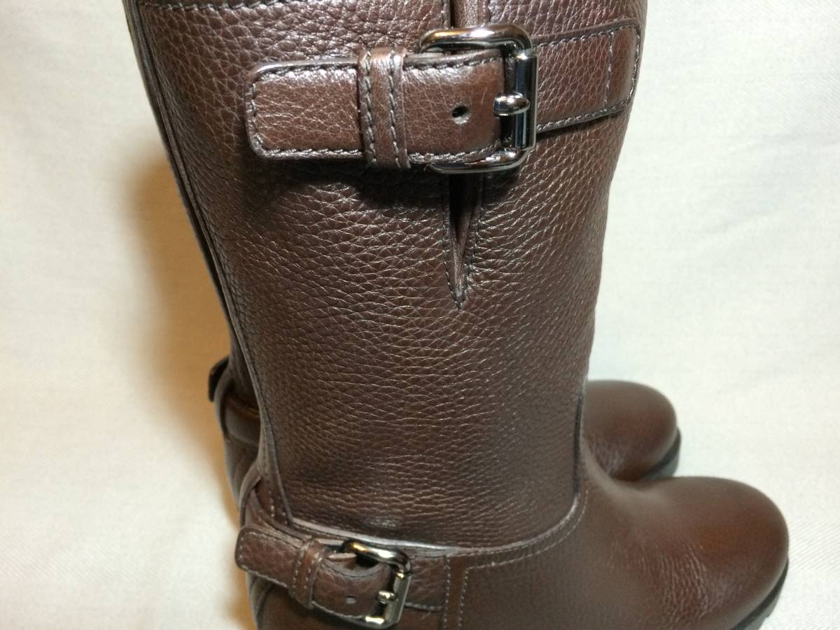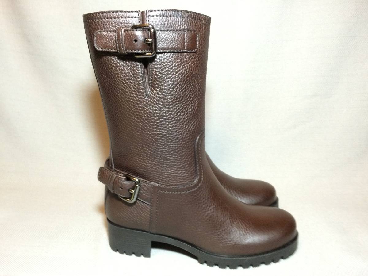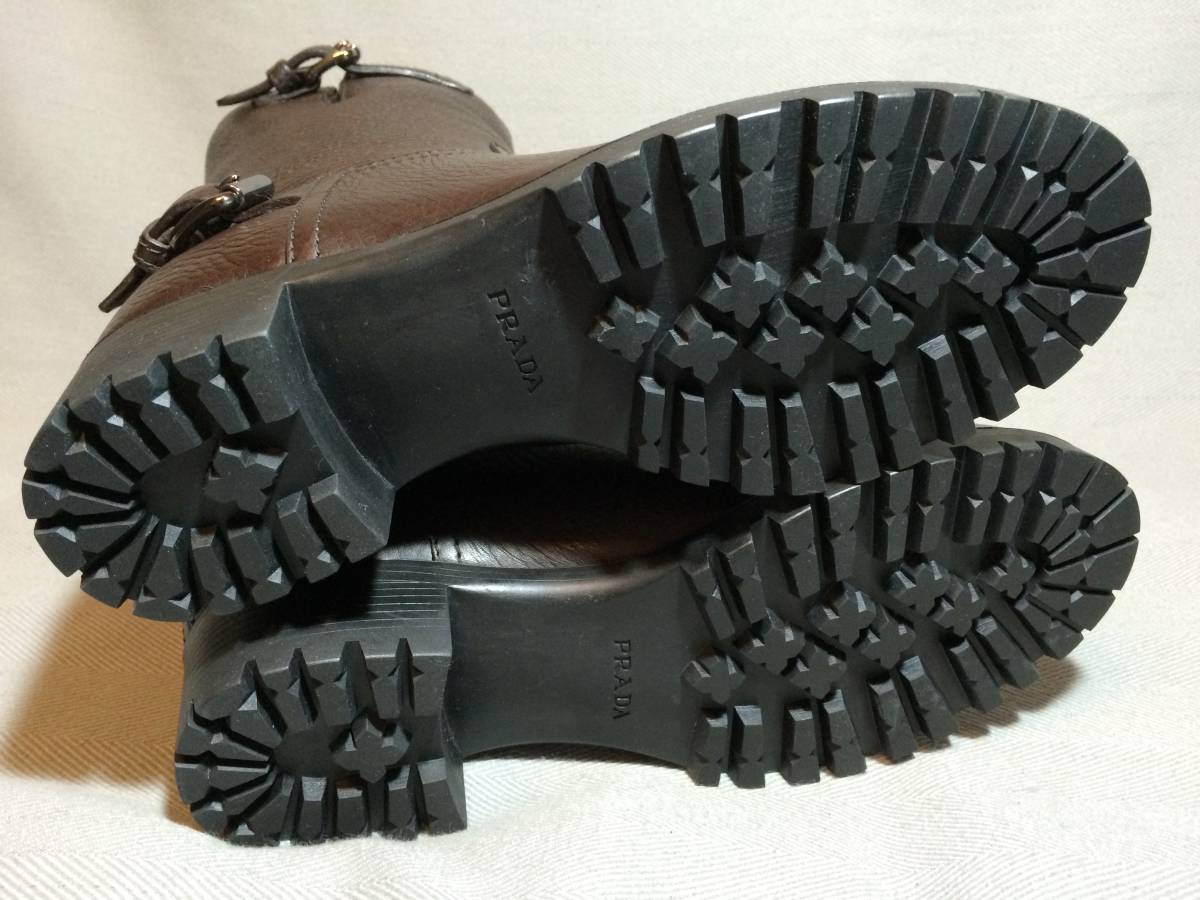 新品 プラダ 最高級 レザー エンジニア ブーツ 35 茶 PRADA 本革靴 靴 シューズ ブラウン