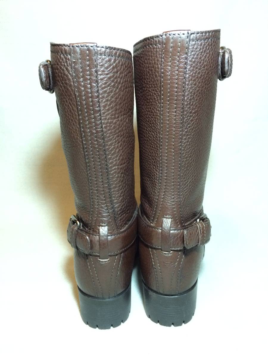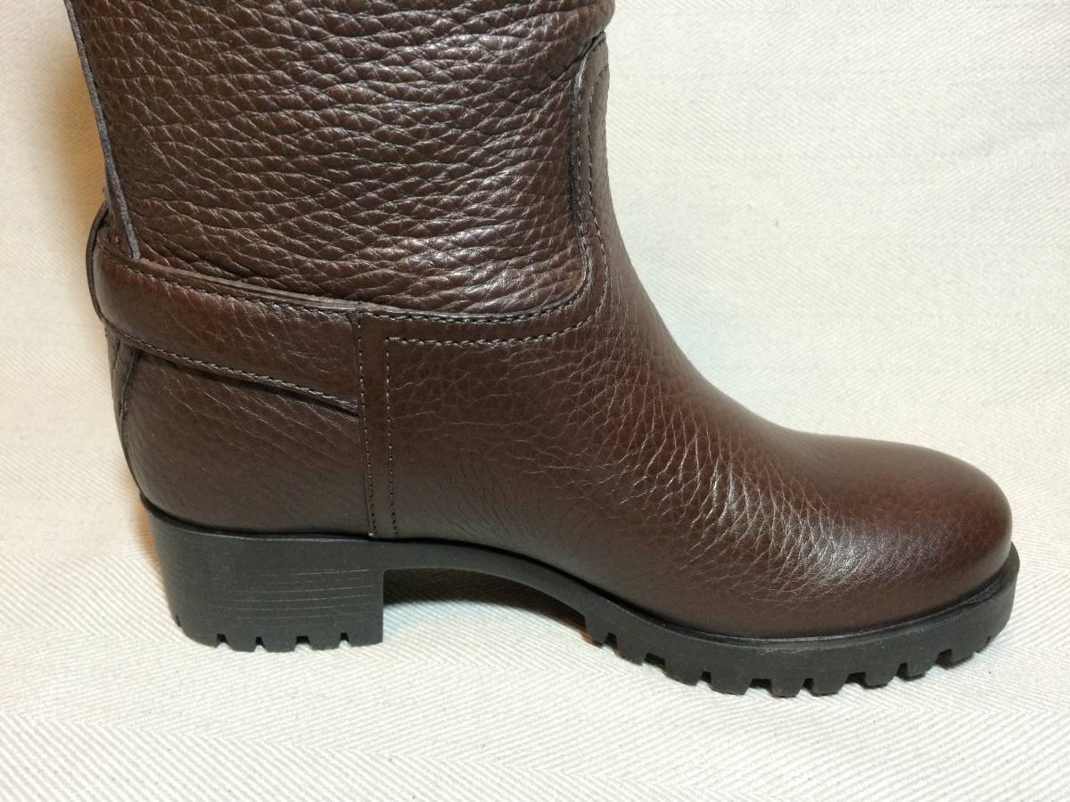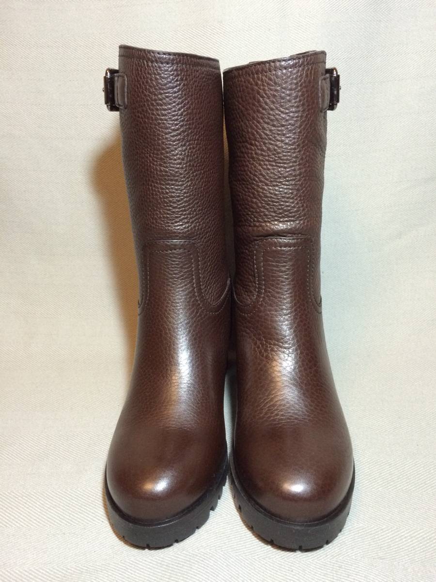 新品 プラダ 最高級 レザー エンジニア ブーツ 35 茶 PRADA 本革靴 靴 シューズ ブラウン