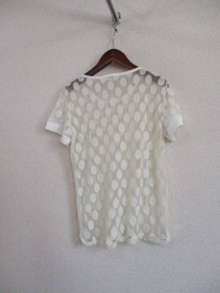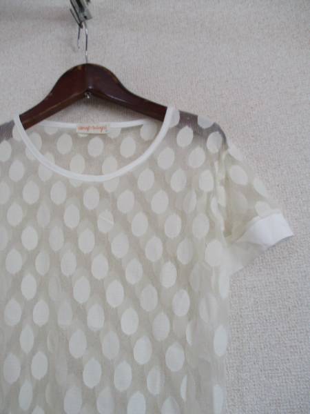 | 商品紹介 | チュールレースのような生地にドットが織り込まれた 半袖カットソーです。 襟周りと袖口は白いサテン生地が使われています。 本体部分は少しクリームがかった白(キナリ)です。 《素材》 ポリエステル50% ナイロン50% |
