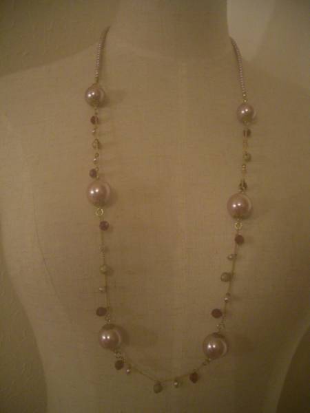 こちらは仕入れの都合でタグ無しですが、未使用新品♪ ノーブランドです!! 長さは約76センチほど、+アジャスターが4センチほどで多少調整でき、大きなパールの直径は1,5センチ程度♪(素人採寸ですので目安でお願いします♪) ゴールドカラーチェーンに、ピンクパープル系のお色のフェイクパールやボルドーのビーズが付いた華やかなネックレスです(#^.^#) 気に入ってくださった方、格安ですので神経質でない方、NCNRで御了承いただける方で、どうぞ宜しくお願いします♪ 他にも、沢山同系商品出品しておりますので是非ご覧下さい(^_-)-☆ 同梱は大歓迎です♪ 必ず自己紹介をご覧くださいませ!! |