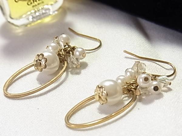 パーティーにも素敵なパール調ビジュービーズが上品なピアス♪