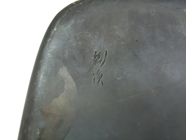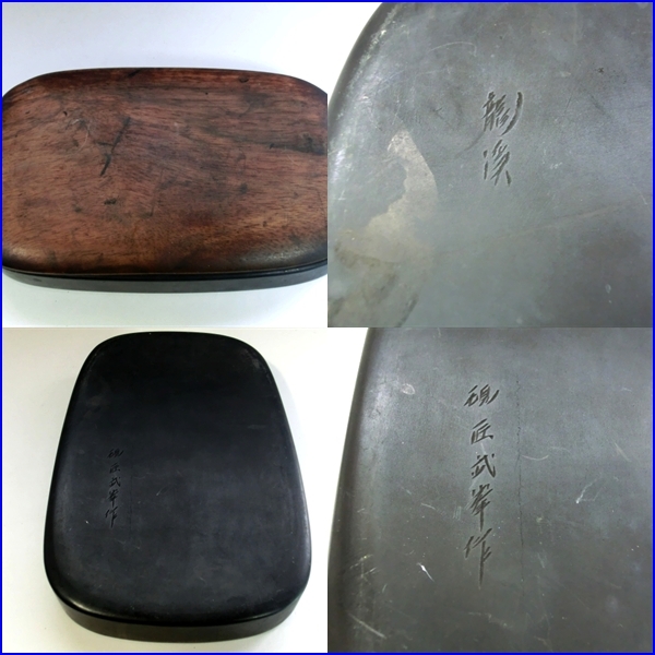 硯■硯匠 武峯作 龍渓硯 木製蓋付き 書道道具 骨董品■