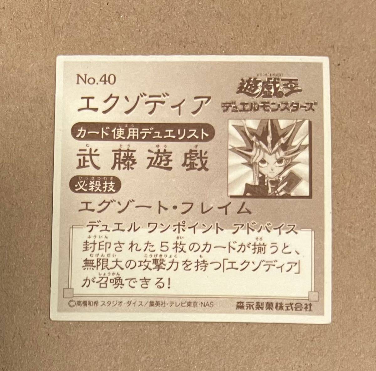 ☆遊戯王シール 森永 エクゾディア(キラ) No.40 光 魔法使い族 武藤遊戯 エグゾード・フレイム 即決☆