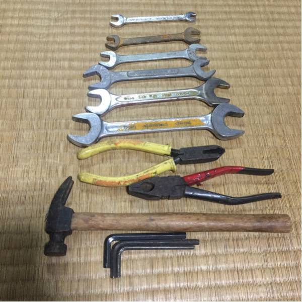 ニッパー、ペンチ、トンカチ、ヘキサゴンレンチ3本
