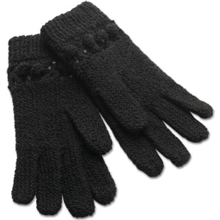 手首部分の小さなボンボンがキュートなニットグローブ。