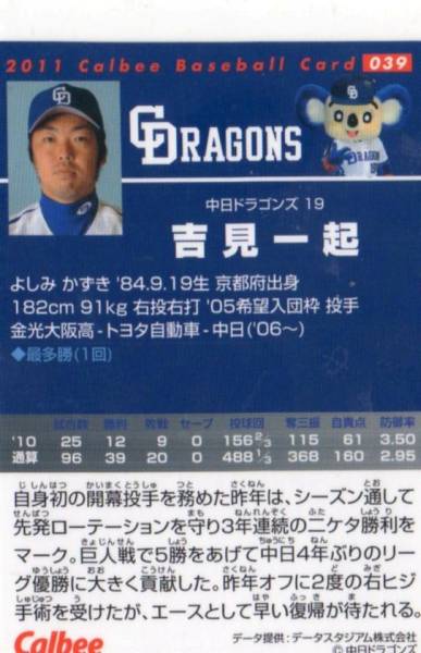 カルビー プロ野球11 039 吉見 一起/中日ドラゴンズ