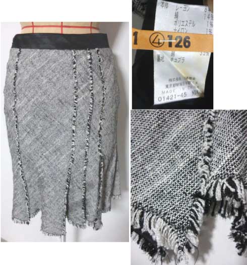 FRAGILEフラジール/三陽商会 スカート38 グレー系白黒 銀ラメ入