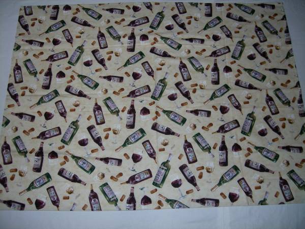 手作り、綿100%、テーブルクロス、ワインで乾杯!