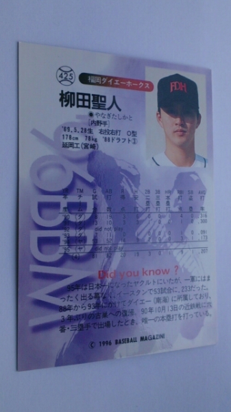 福岡ダイエーホークス柳田聖人!1996BBM425元南海ホークスヤクルトスワローズ |