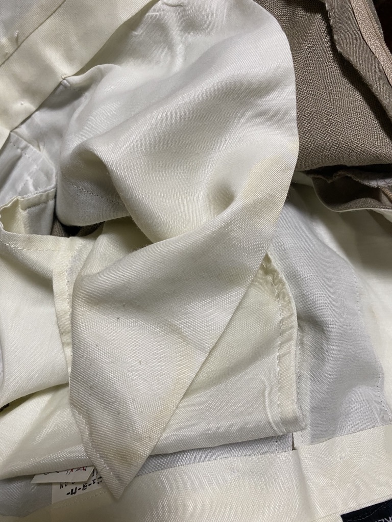 保管によるシワがあり、裾上げ済みになります。それ以外に目立つダメージはありません。