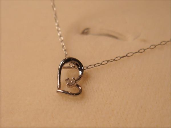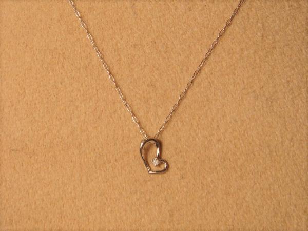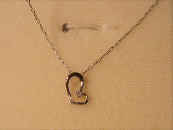 細いシンプルチェーンの先についたハートモチーフのトップにはダイヤが1pc留まって光っています。