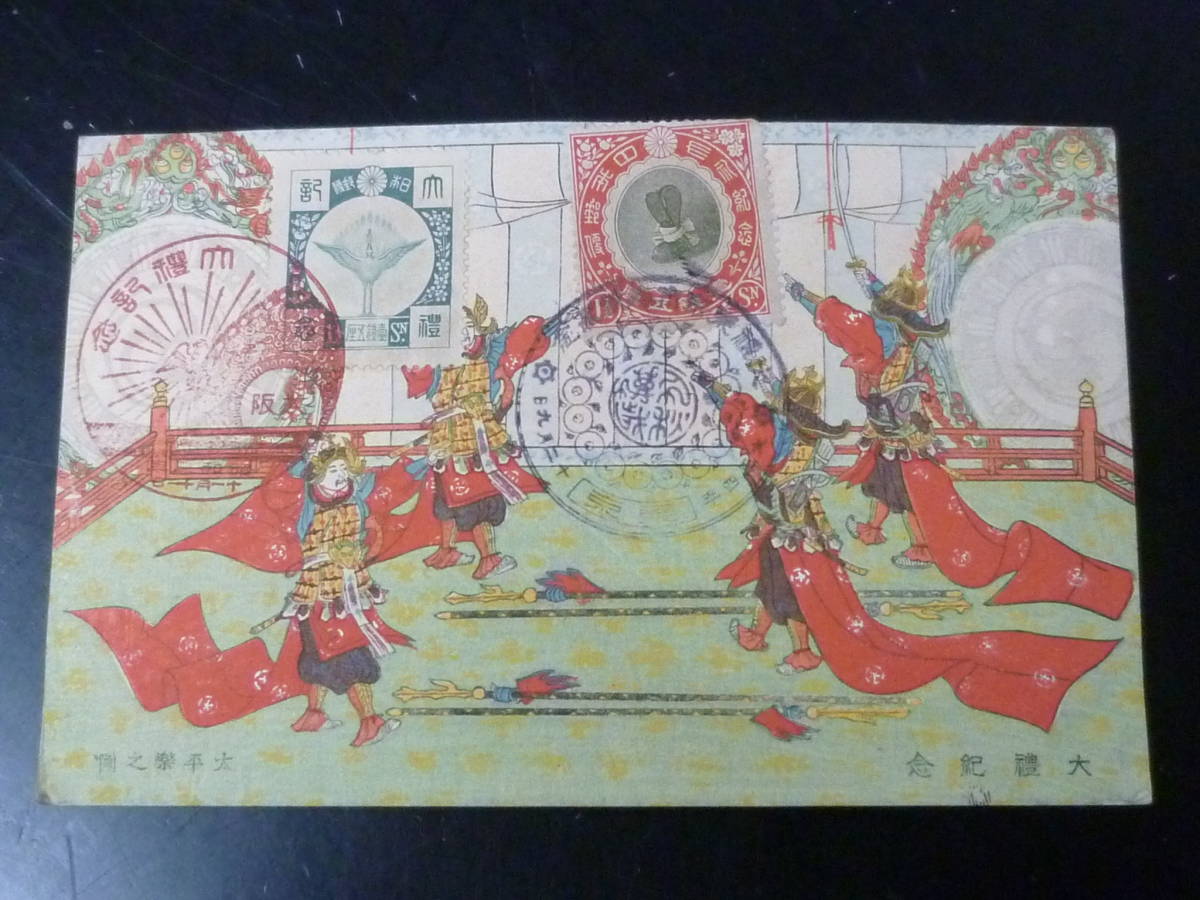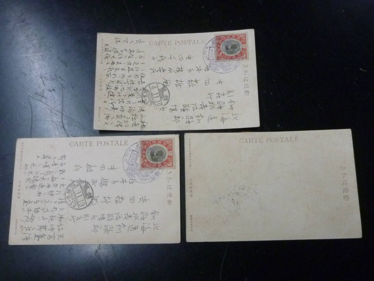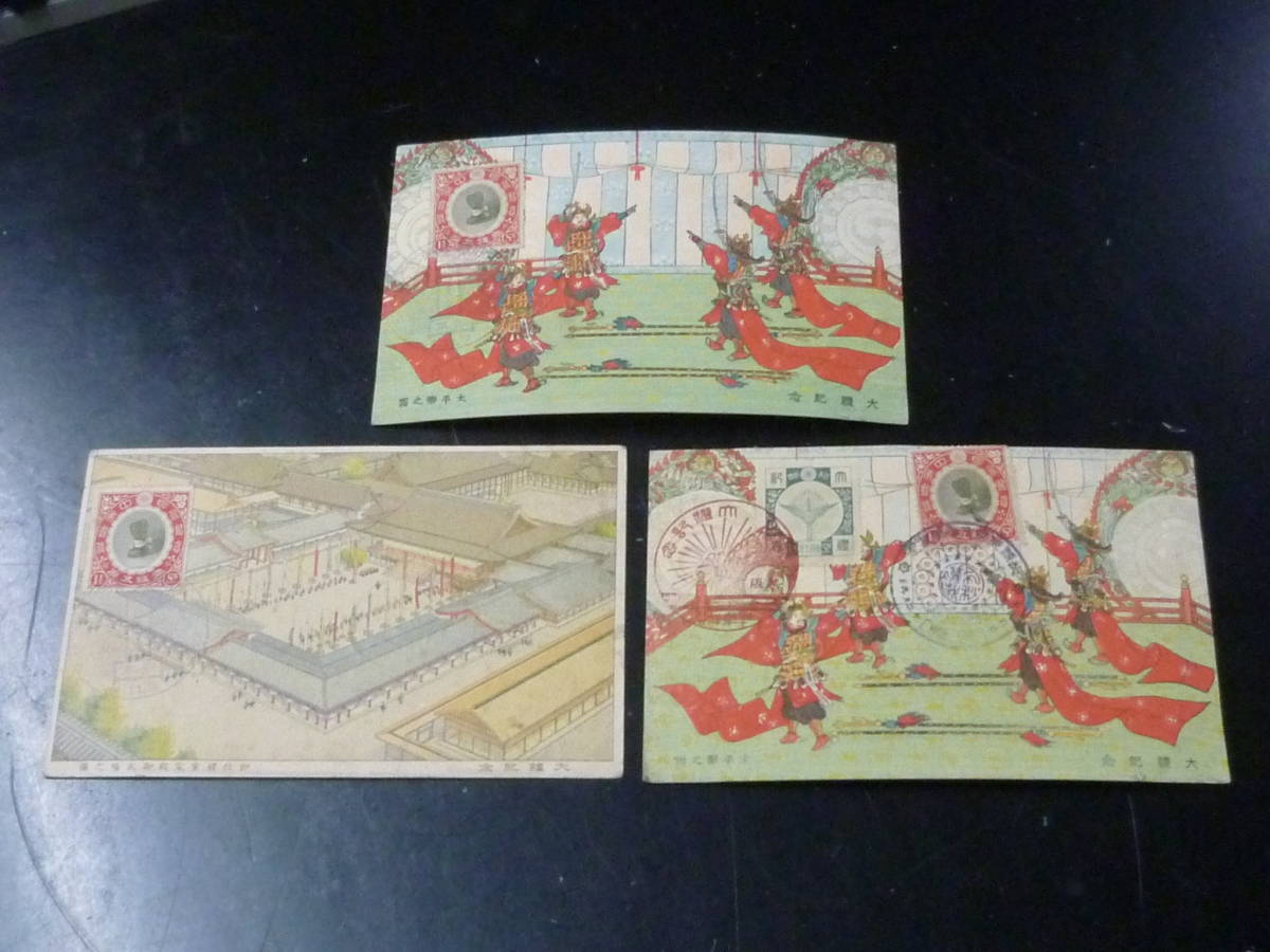 21MI P 絵葉書№48 日本はがき 大正 記念切手 大正大礼・他貼 計3通