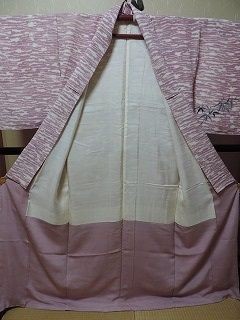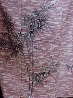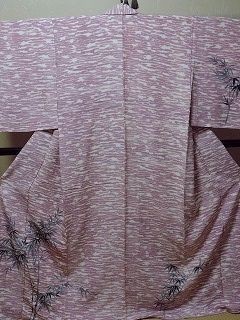 子供着物女の子 正絹 袷 訪問着 ピンク 広衿 笹の葉 身丈149cm 中古 kizg32★喜香★
