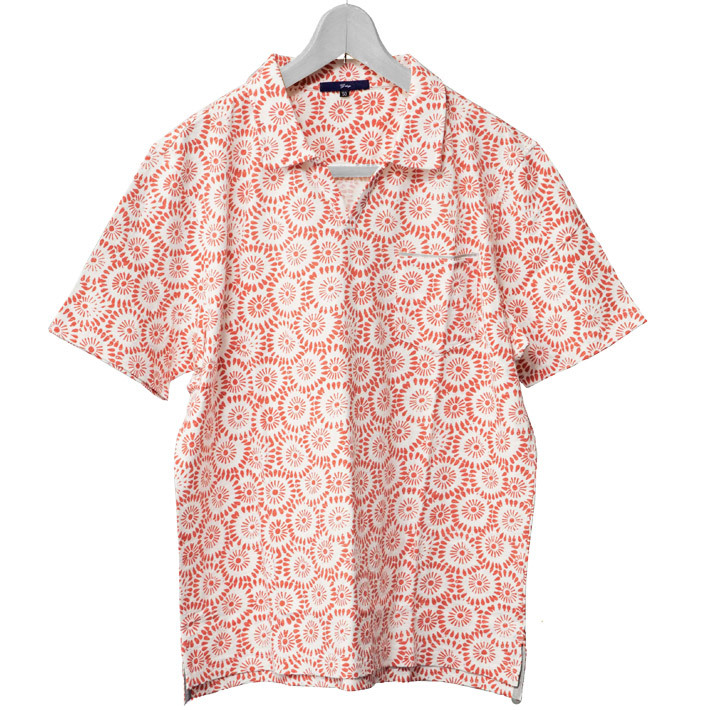 新品 / こだわり素材の特徴的な総柄プリント ポロシャツ / デニムからホワイト系のパンツまで幅広い相性で洒落っ気 ◎です。