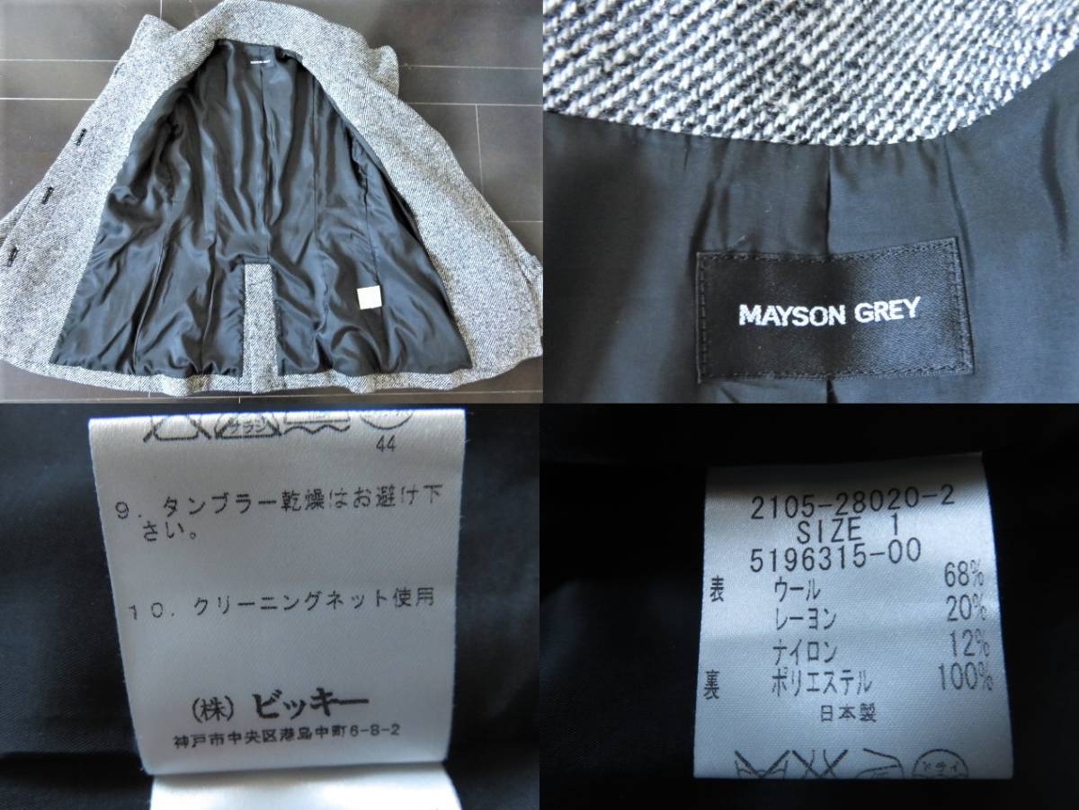 ■上質美品 ビッキー【 MAYSON GREY 】メイソングレイ 高級 ウールコート 日本製 コート【1】7号S コート モノトーン ウールコート c648