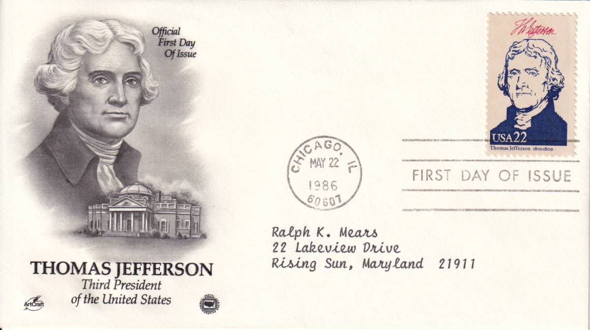 【FDC】著名人:第3代大統領トーマス・ジェファーソン(1986年)(アメリカ) t1819