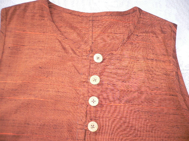 正絹紬 綺麗な色のベスト ブローチ付き
