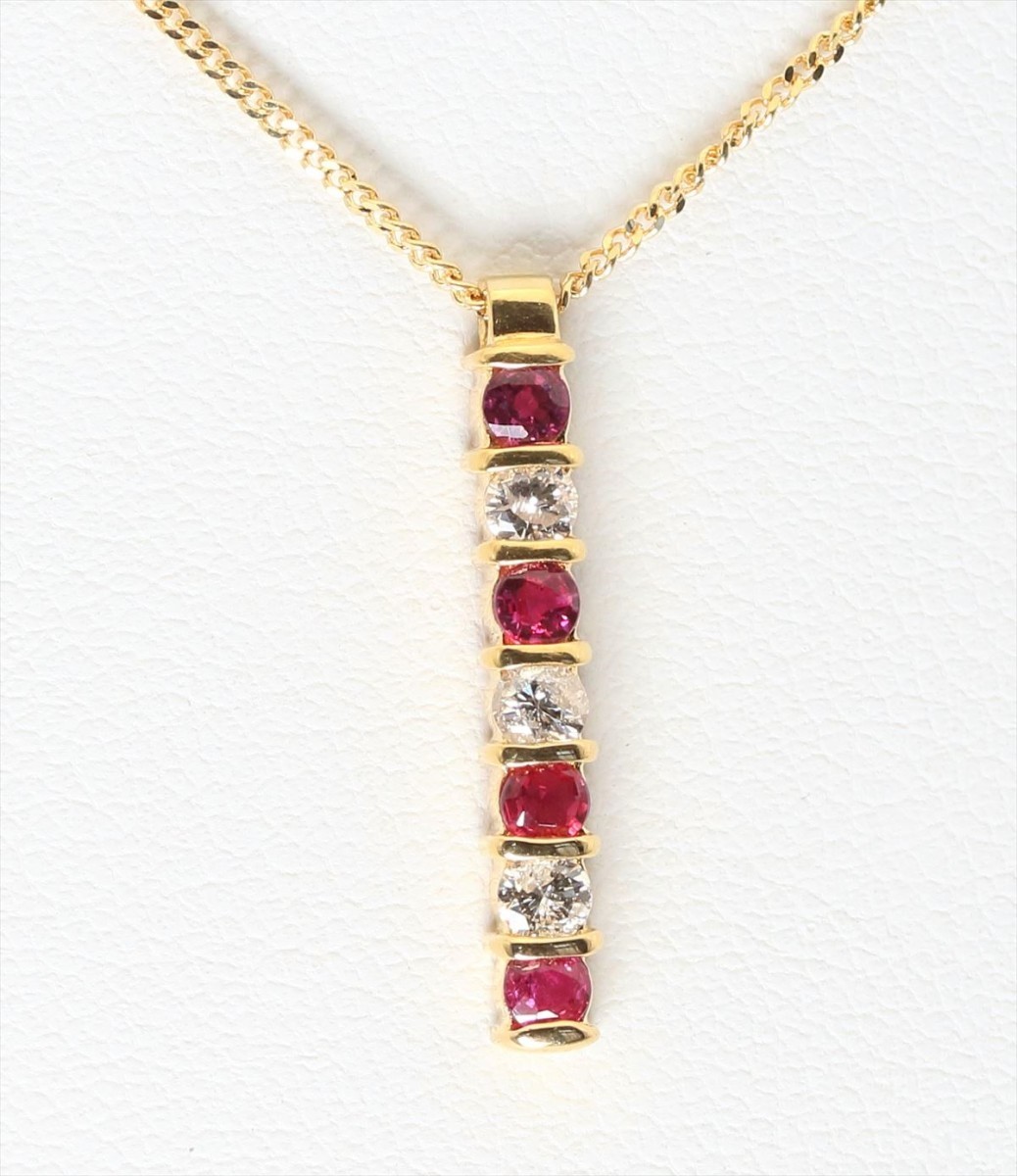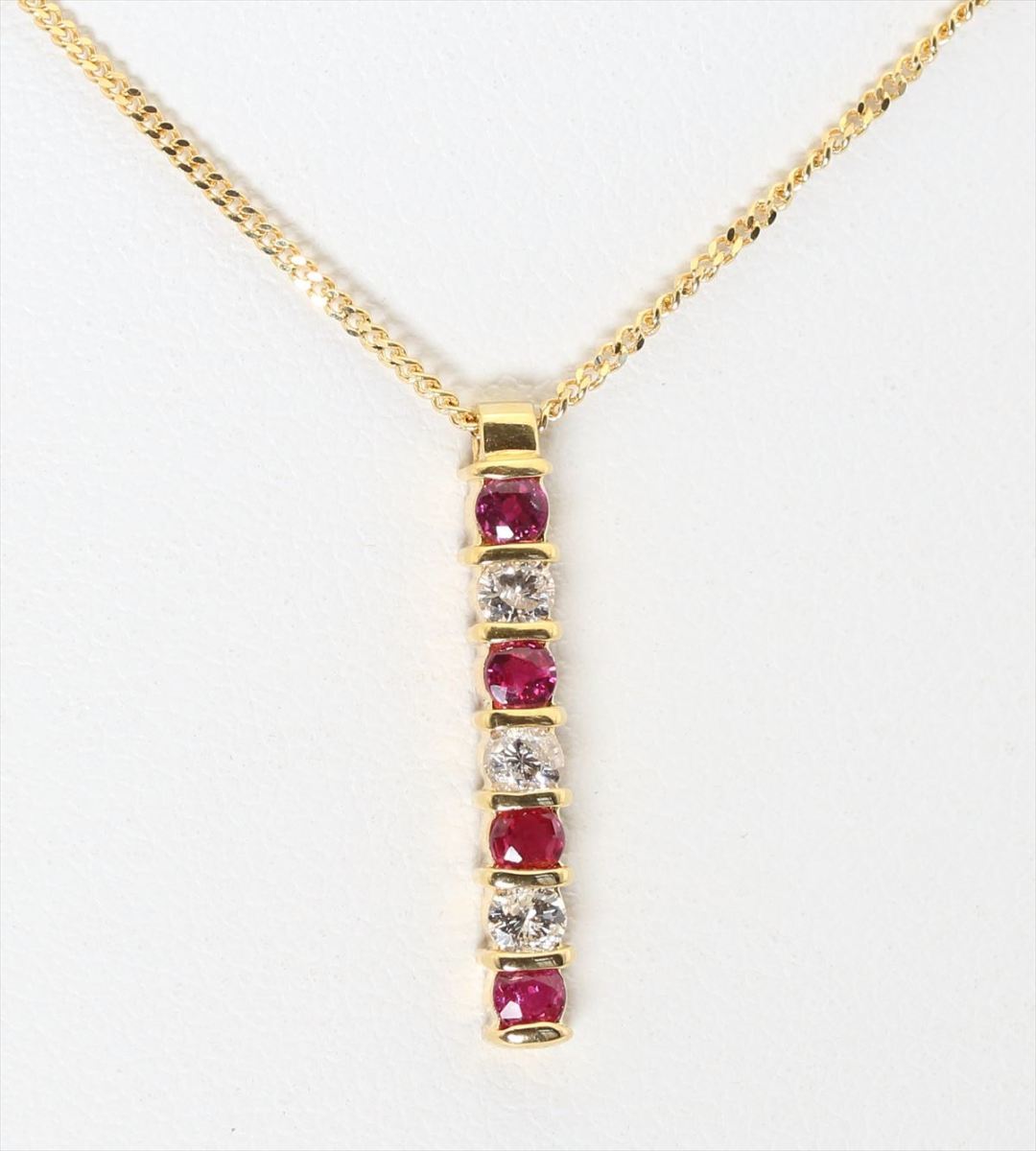 K18 ダイヤモンド ルビー スタイリッシュ ネックレス