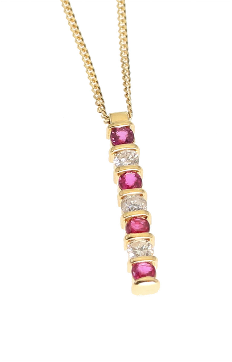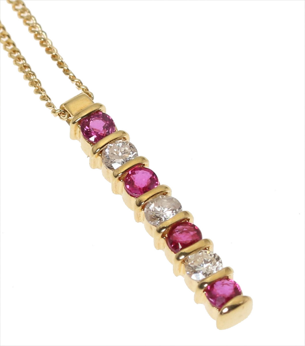 輝きがよいルビーとダイヤモンドを交互に留めてあります。