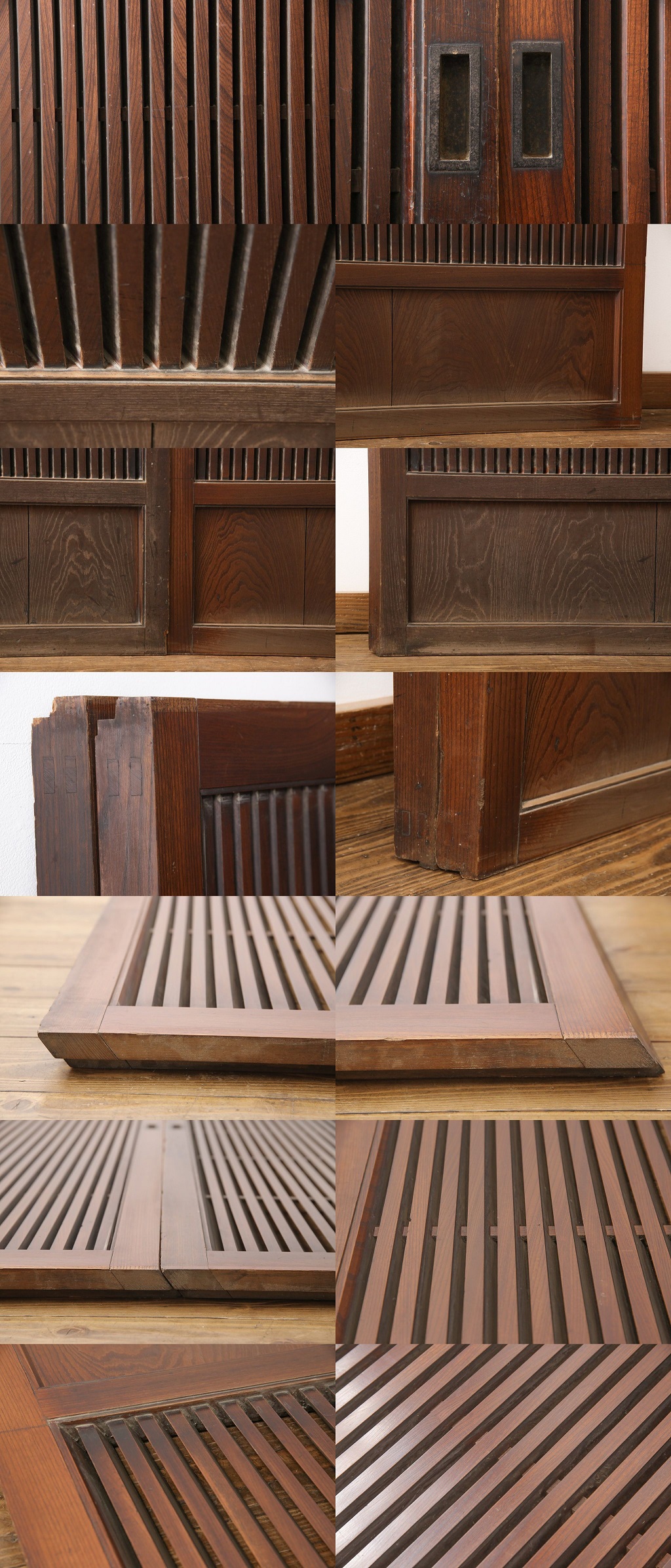 R-055070 アンティーク建具 最高級 総ケヤキ材(欅材) 変わり型 凝ったつくりが魅力の格子戸2枚セット(引き戸)(R-055070)