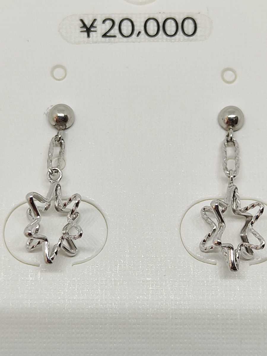 このピアスの特徴は、ツヤのある地金とねじれのある地金2種類を縦と横にセッティングしてるところです。
