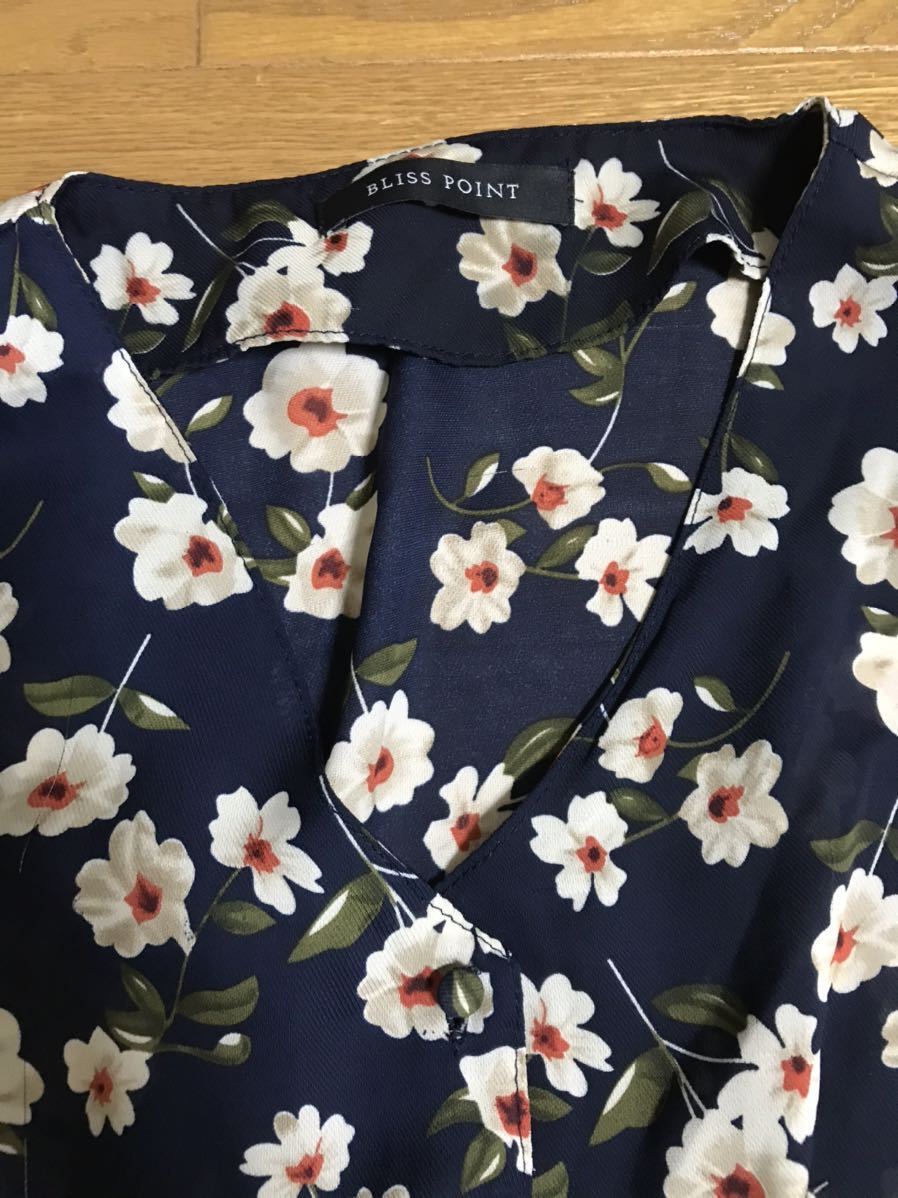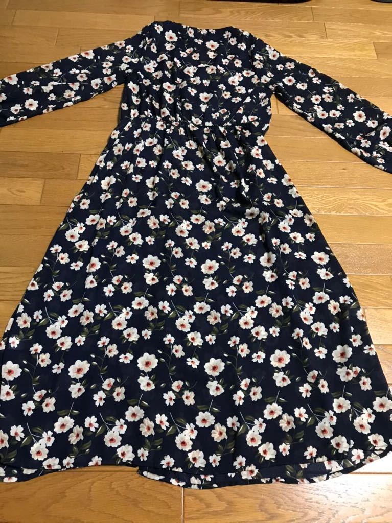 BLISS POINT ブリスポイントフラワー花柄 紺色×白色 長袖 マキシ丈ワンピース ガウン フリーサイズ