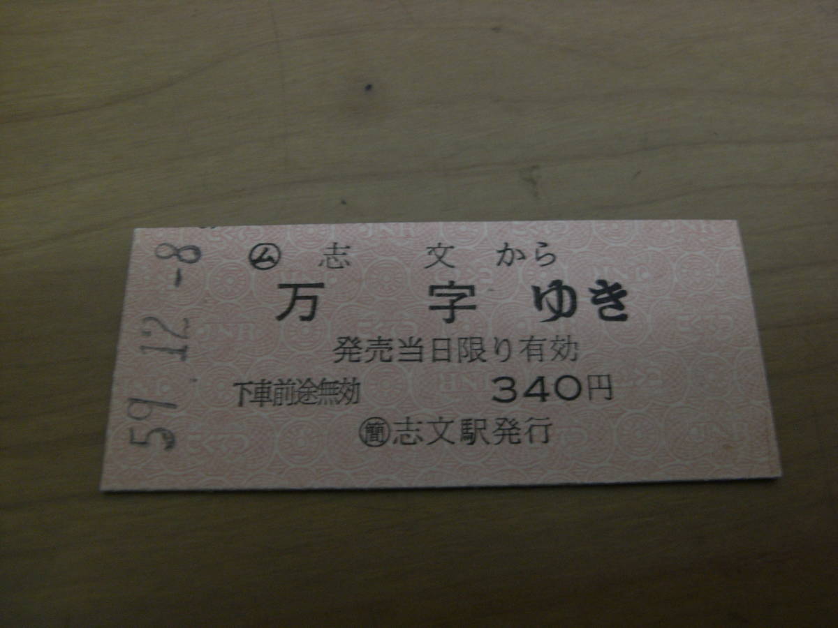 室蘭本線・万字線 ム志文から万字ゆき 昭和59年12月8日 簡 志文駅発行