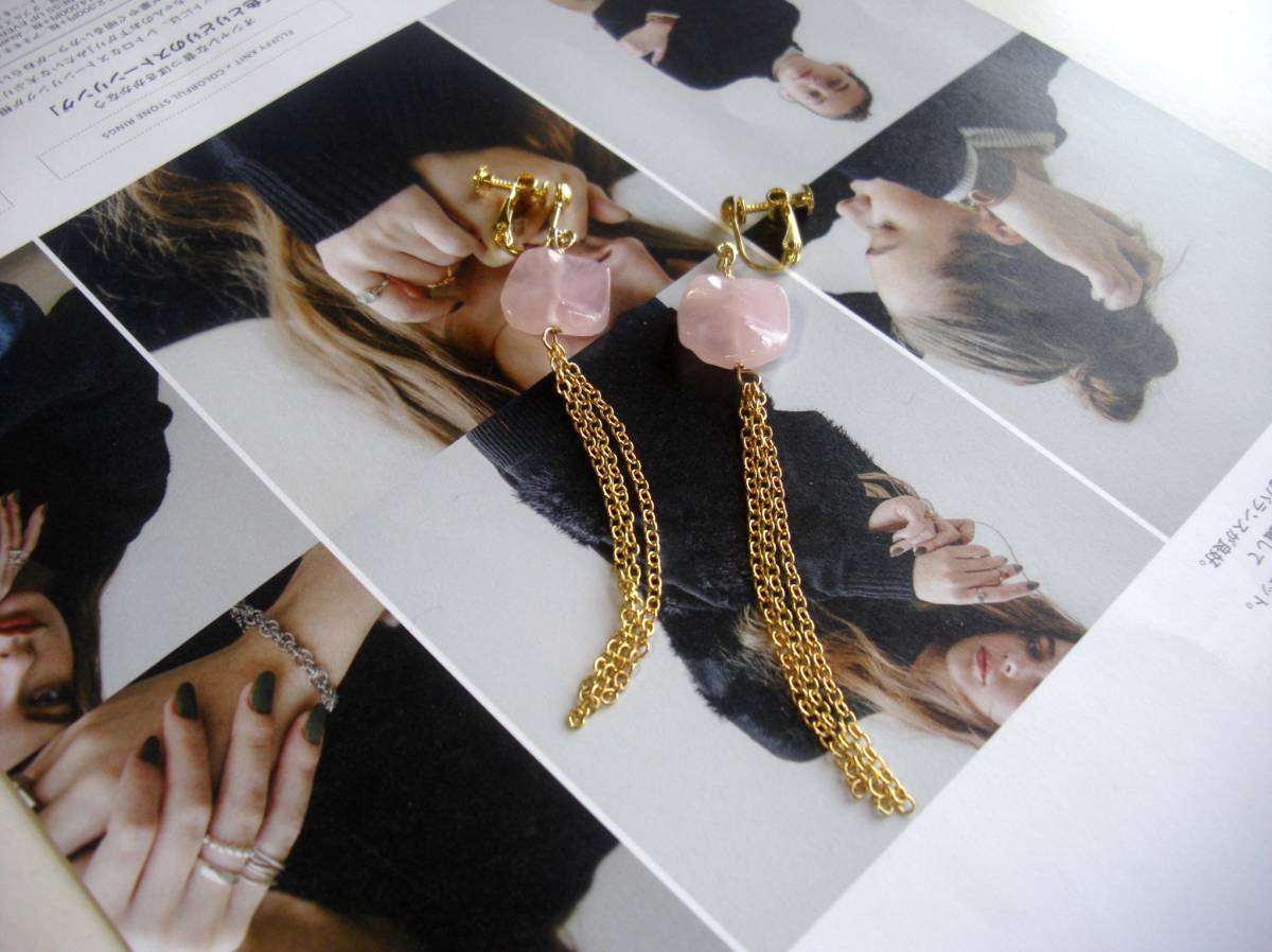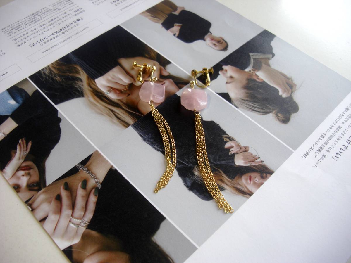 ニューヨーク・テイスト・・シリーズです♪やさしいピンクと薔薇・・可憐なローズクォーツのイヤリングです♪15 ミリ位のフラ ワーのローズクォーツに極細のチェーンを合わせました♪長さは全長10センチ位です♪ピアスに変更出来ます♪ネックレ スやブレスレットも出品しています♪シンプルで飽きのこないいつまでも着けられるデザインを考 えて作りました!ハンドメイドをご理解頂いてノークレーム、ノーリターンでお願いします
