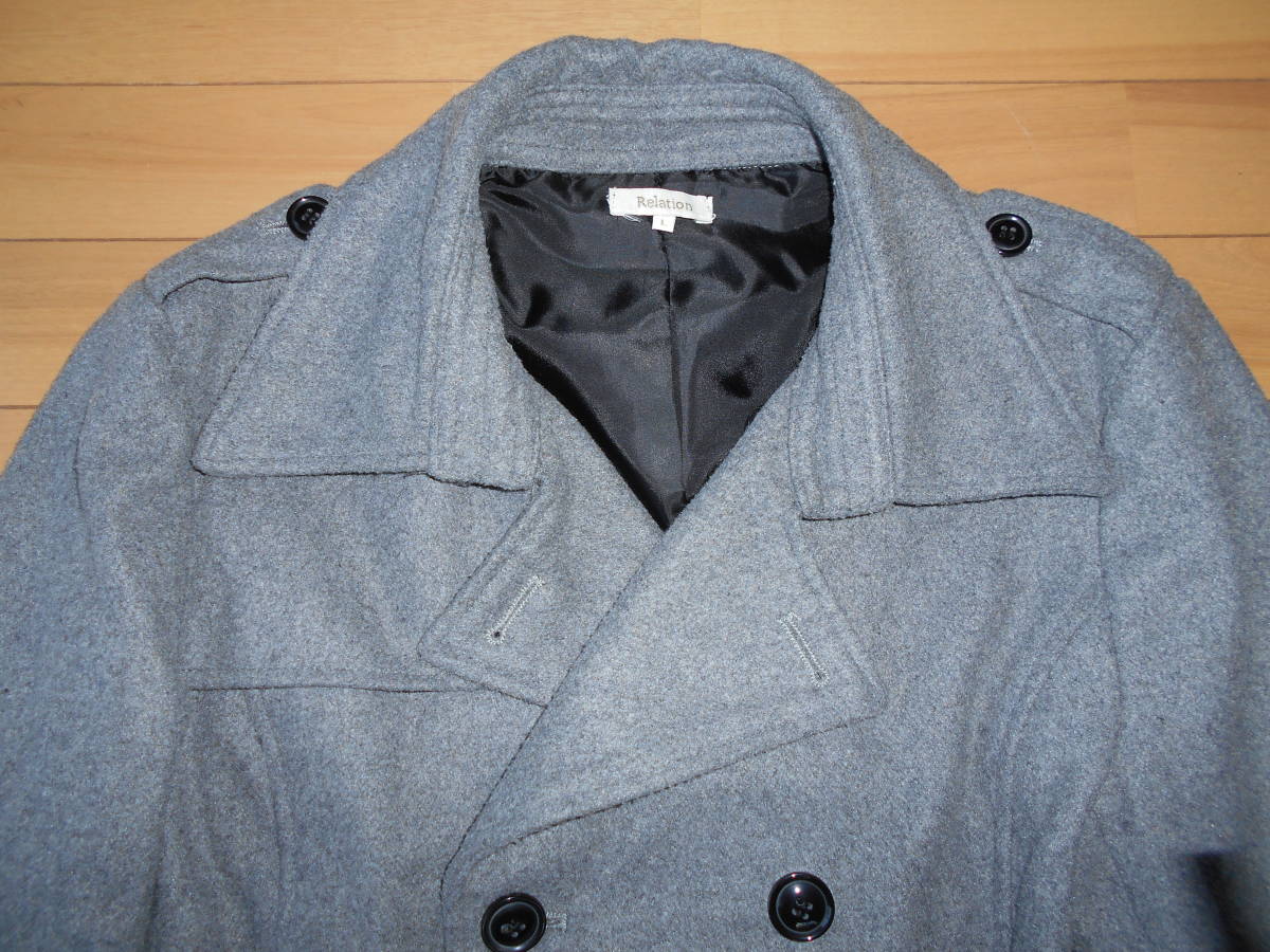 ★Relation no.NEJ-63 ダブルブレスト ショートトレンチコート★杢淡灰sizeL★