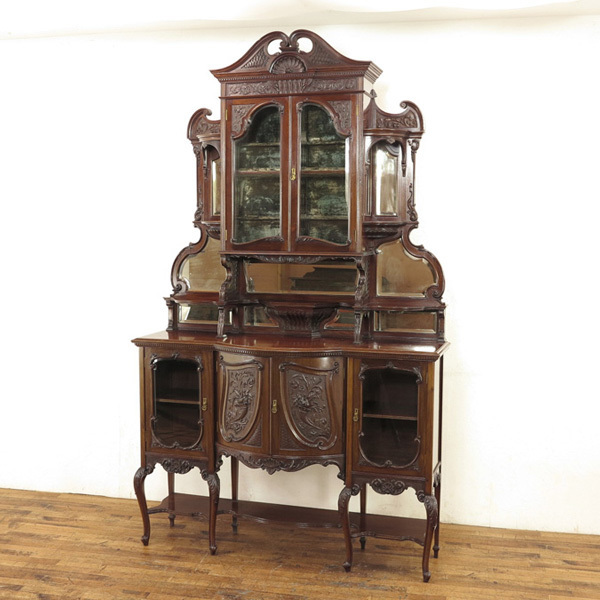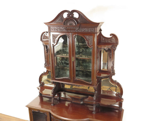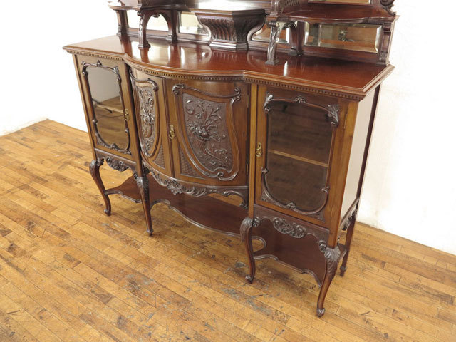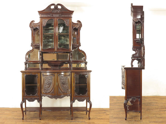 ヴィクトリアンパーラーキャビネット 飾り棚 素晴らしい彫刻 猫脚 収納兼ディスプレイ棚 イギリスアンティーク家具 56285