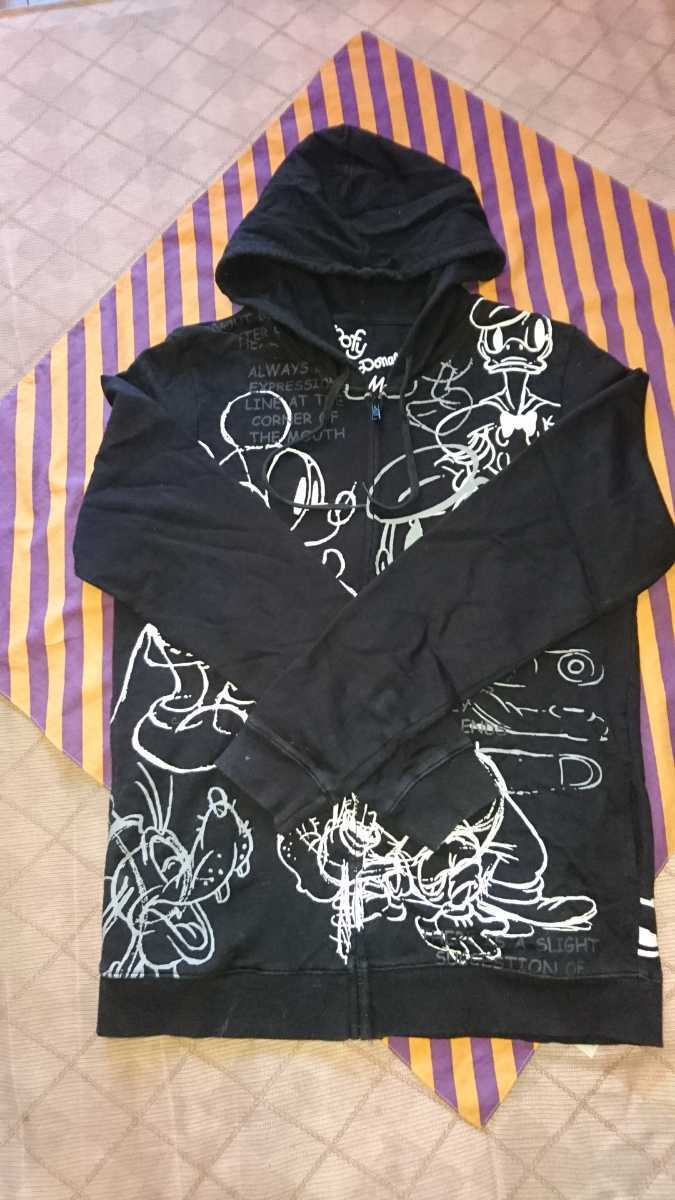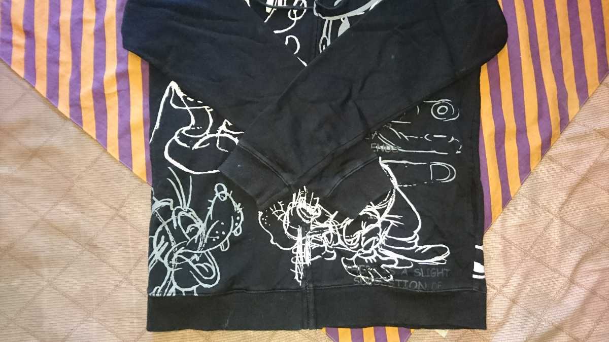 【古着】☆DISNEY 公式 3キャラクター プリント パーカー ポケット付 / サイズ XL/ 黒 /希少品