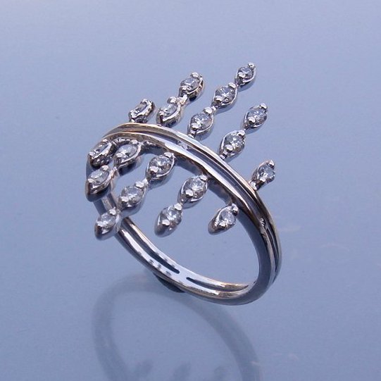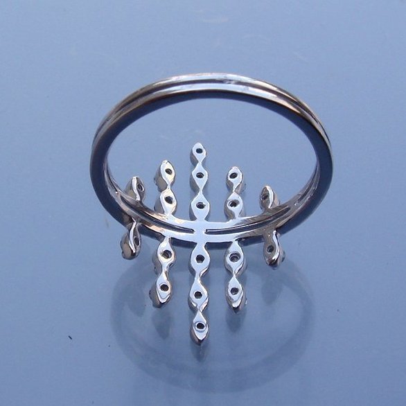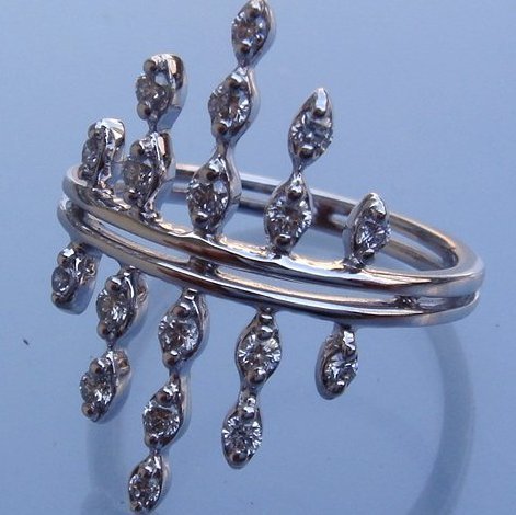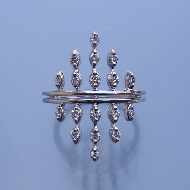 非常に程度の良い、よく光るメレダイヤを縦長に見える様、△と▽型に配置しました。