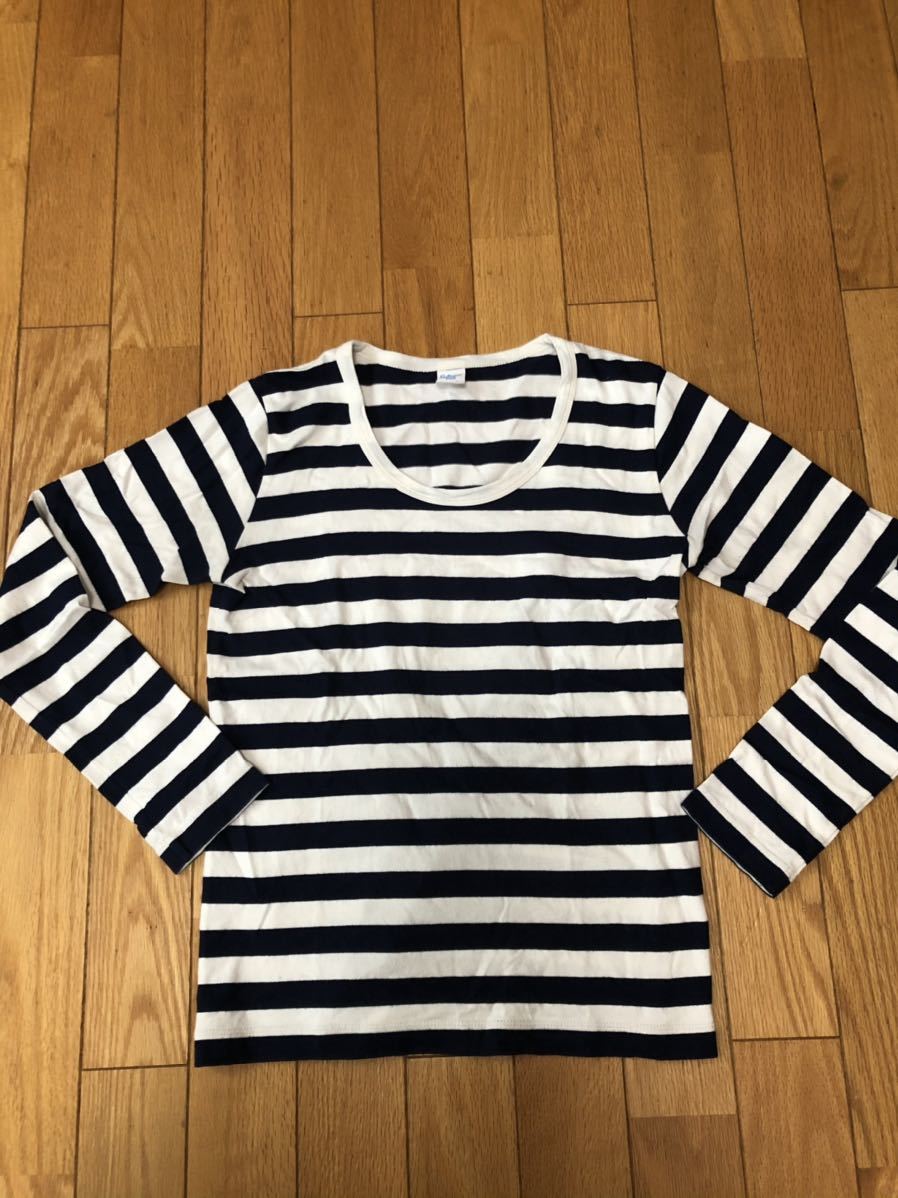 紺×ホワイトの長袖ボーダーカットソーです。