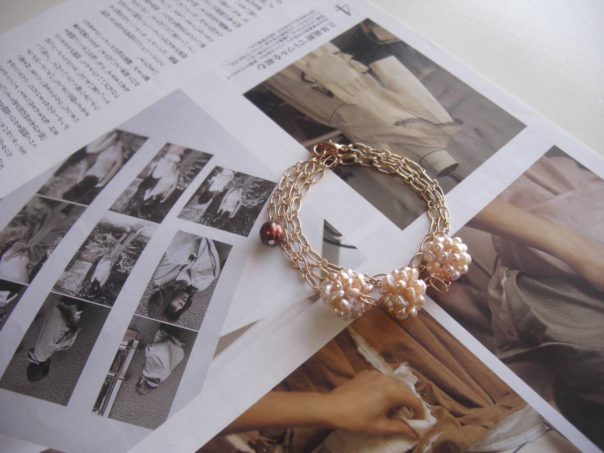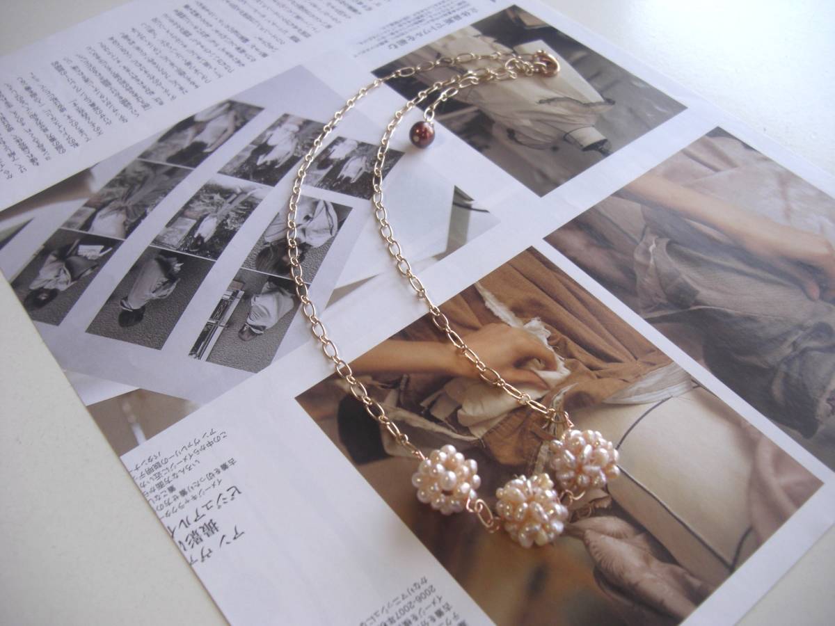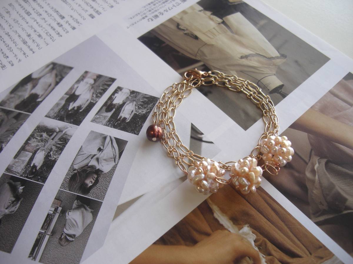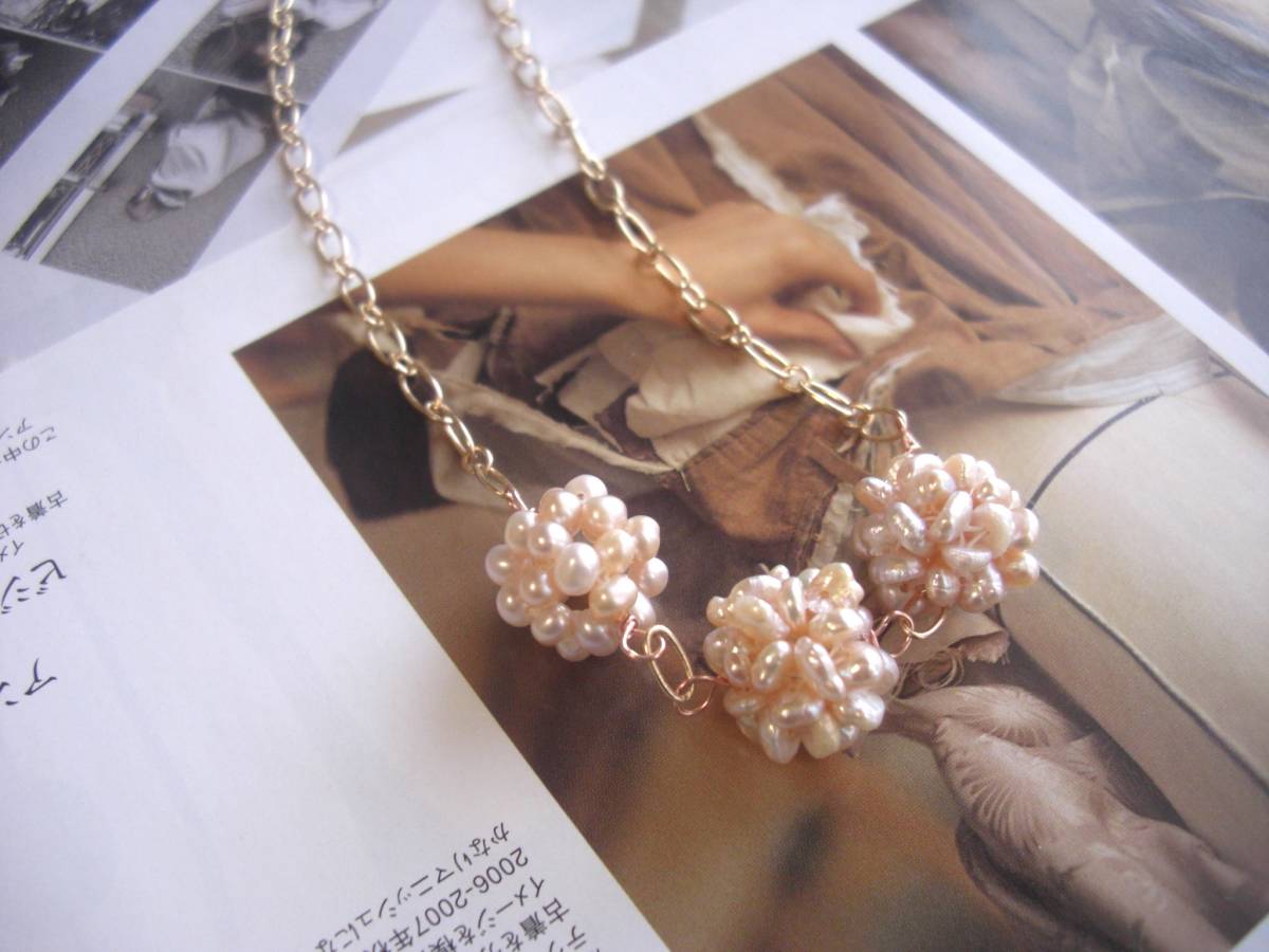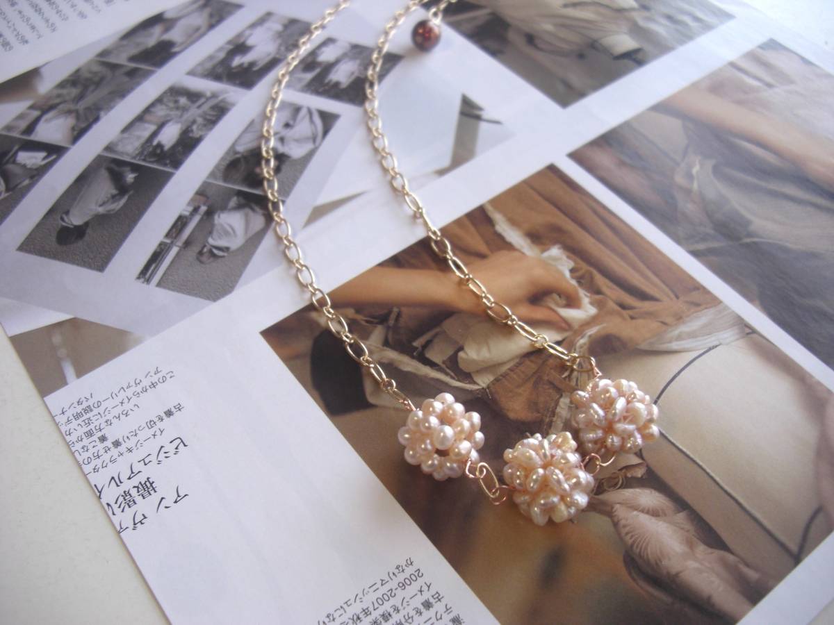 お揃いコーデ・・シリーズです♪やさしいピンクの小さなパール・・やさしいピンクの淡水パール玉のネックレスです♪15ミリから18ミリの淡水パー ル玉にピンクゴールドのチェーンに繋いで可憐な表情です♪ネックレスは長さ58センチ 位で調節自由です♪画像のようにブレスにされても可愛いです♪シンプルで飽きのこないいつまでも着けられ るデザインを考えて作りました!ハンドメイドをご理解頂いてノークレーム、ノーリター ンでお願いします