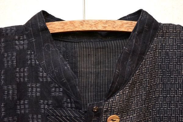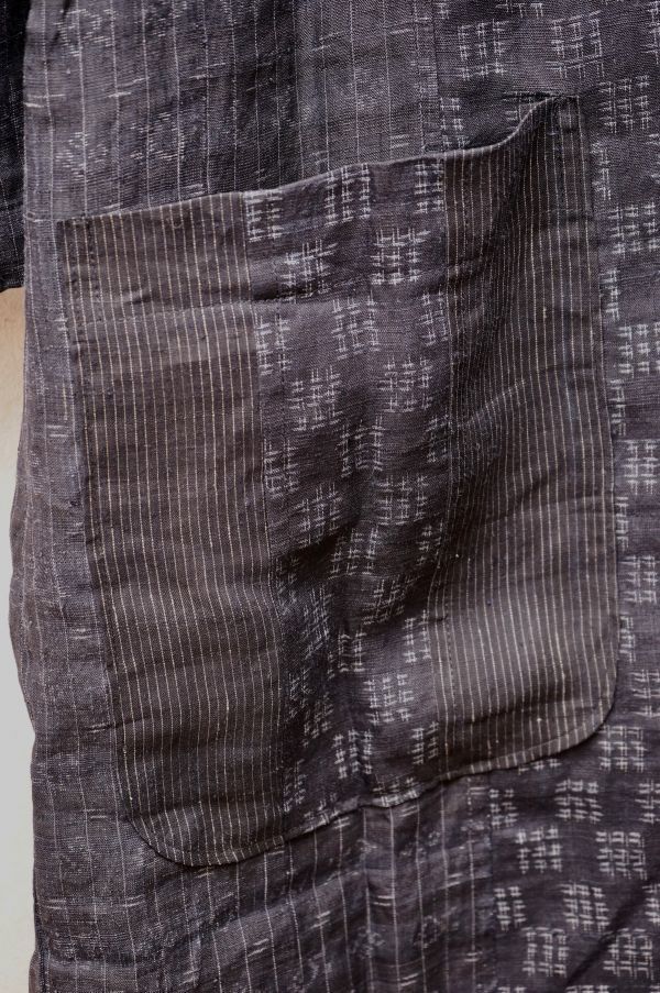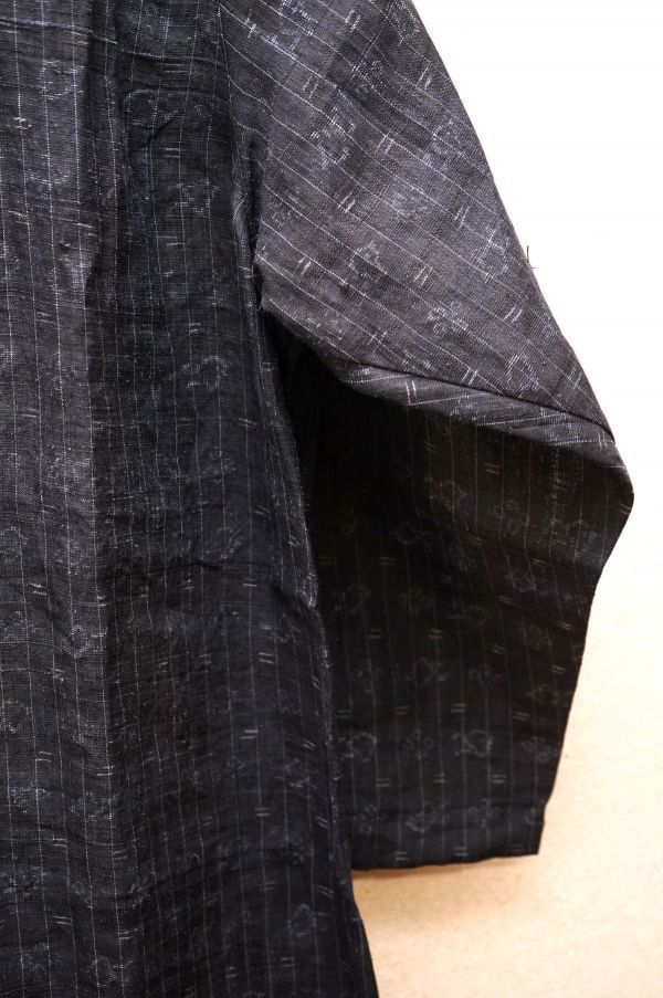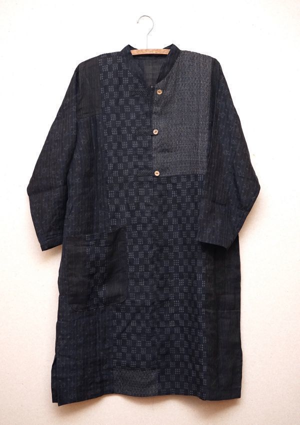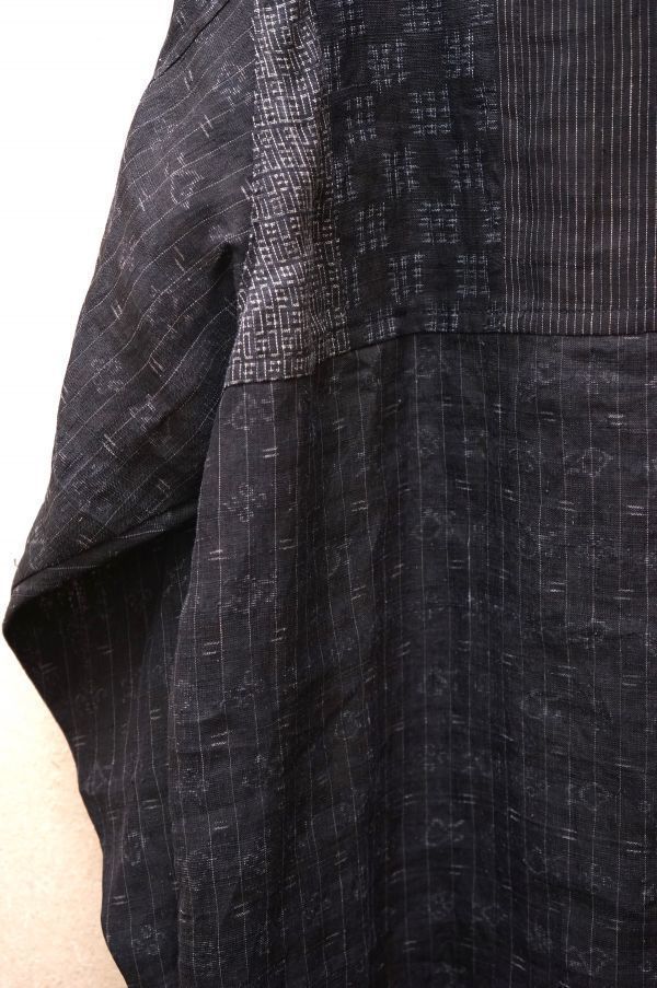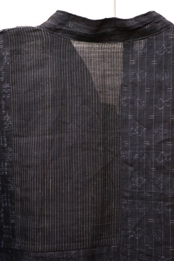 862-J◆古布リメイク◆麻ワンピース◆チュニック◆上布◆絣と縞◆七分袖◆ゆったりサイズ◆古着 |