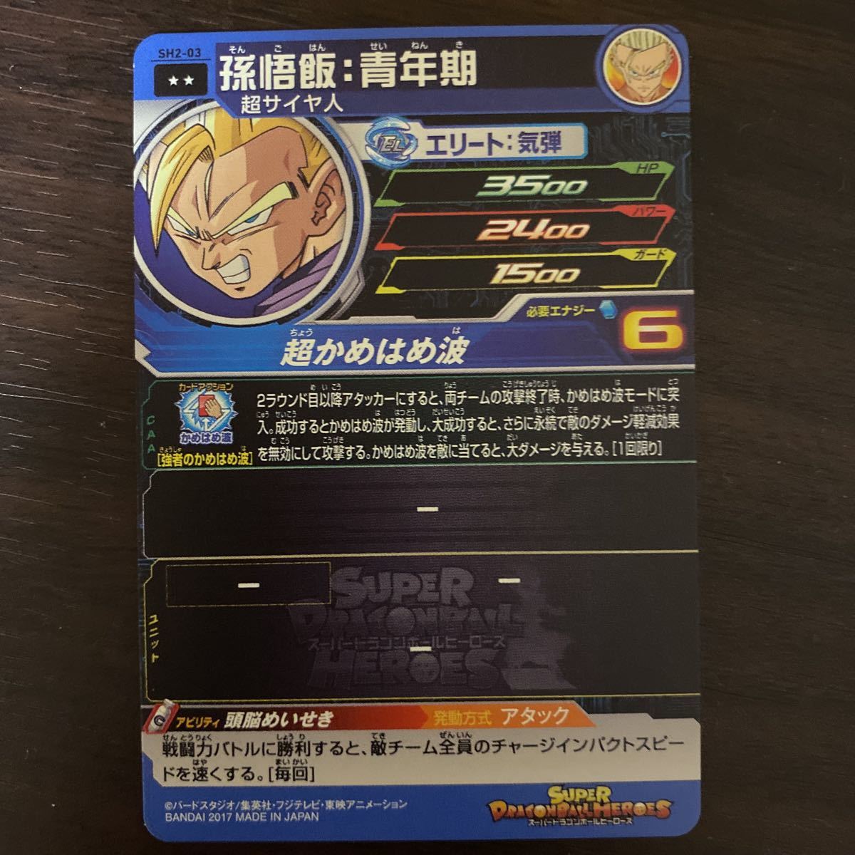 SH2弾レア/ 孫悟飯:青年期(超サイヤ人)/ SH2-03/ 技:超かめはめ波/ スーパードラゴンボールヒーローズ/ レアリティ:☆☆/ 2017 BANDAI