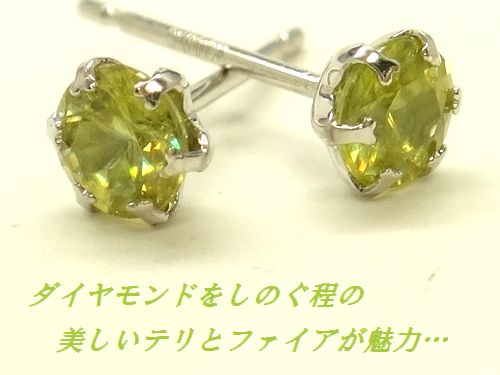希少石天然スフェーン3.5mmのスタッドピアスです。