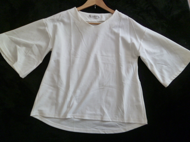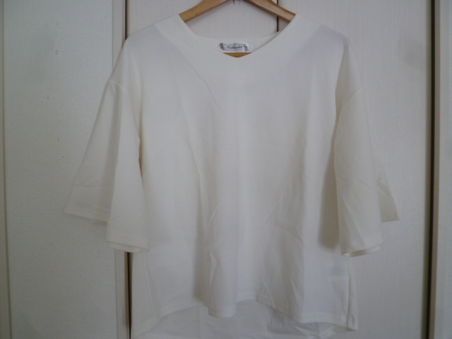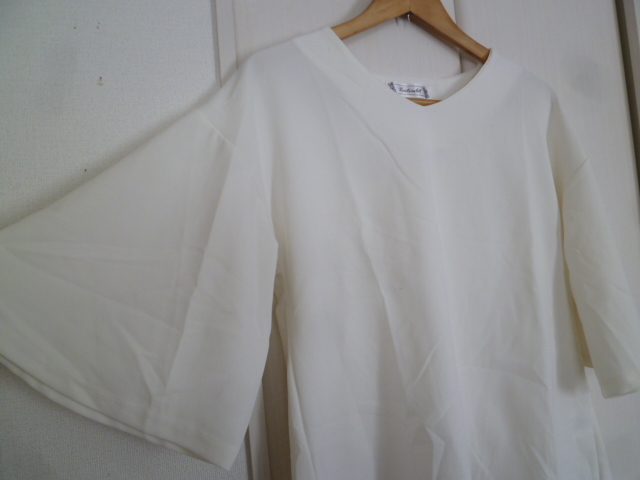 ventrio let△オフホワイトフレア袖ボリューム袖カットソーL/半袖トップスマダムミセス△T415