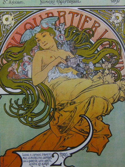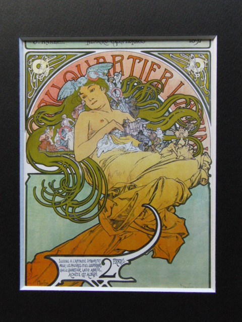 アルフォンス・ミュシャ、「オ・カルチェラタン」、希少画集画、新品高級額・額装付き、状態良好、送料込み、salt