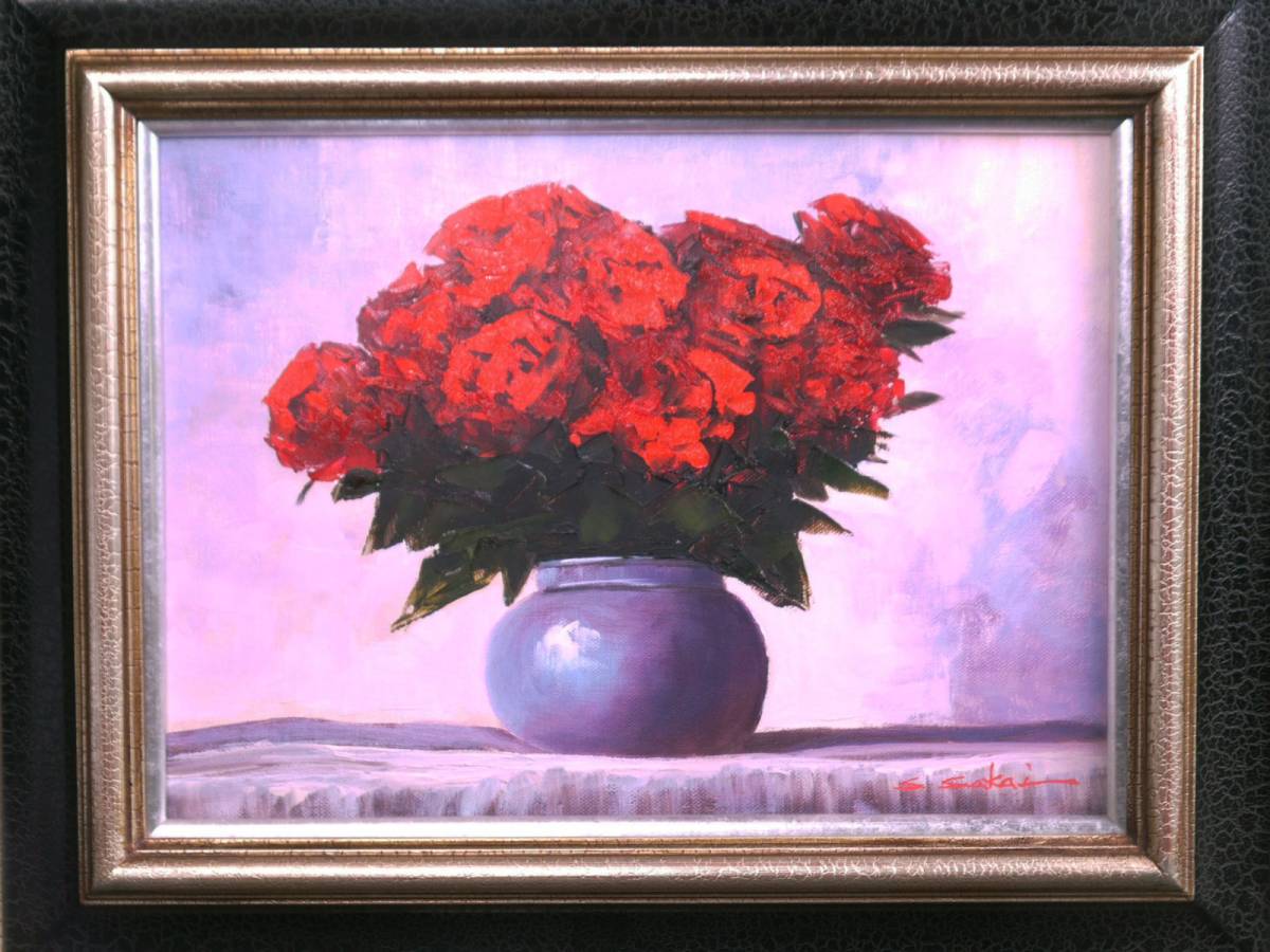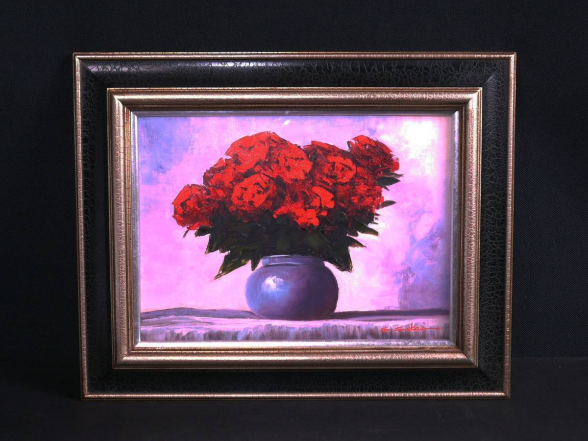 | 商品名 | 酒井修一郎 『 ばら 』 薔薇 油彩画 F4号 肉筆 真作 額装 ◇ 美品 管23043 |
