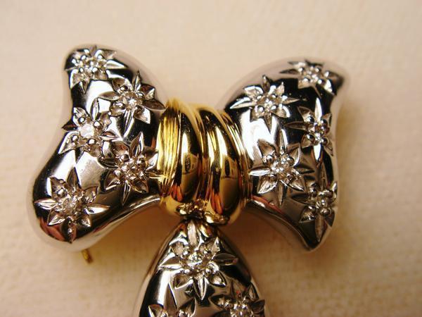 リボン全体に星の輝きのようにダイヤがセットされ、可愛くオシャレな高級品に仕上がっています。