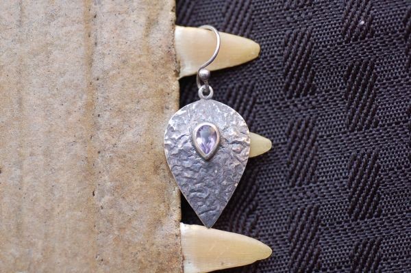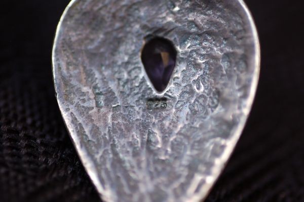 年代 :1970's以降 サイズ :チャーム 縦 3cm x 横幅 1.8cm / 石 縦 0.8cm x 横 0.5cm 素材 :Sterling Silver(銀925) / 天然石 アメジスト 重さ :約 5g アメリカで買い付けたビンテージ、銀製ピアスのご紹介になります。 シンプルで高級感のあるオシャレなモダンデザインになります。 銀職人よるハンドメイド作品となっており、ハンドメイド感が抜群にあります。 ポリッシュはしておりませんので、ビンテージな良い雰囲気があります。 出品している全ての商品は古い物のため細かいキズや使用感はありますので ビンテージ品として理解頂ける方のみ入札下さい。 他にも世界のアンティーク雑貨等、多数出品しておりますので宜しければ マイオークションからご覧ください ↓↓↓ ![]() サイズは出来る限り正確に測っておりますが、多少の誤差はご了承ください。 写真をしっかりとご確認の上、入札して下さい。 (神経質な方はご遠慮下さい) 質問などありましたらお気軽に問い合わせ下さい。 尚、細かい写真など詳細をご希望の方は拡大写真を送りますので、質問欄にご希望の旨とメールアドレスをお載せ下さい。 (ご質問内容は公開される事はございません。ご安心下さい) | |||