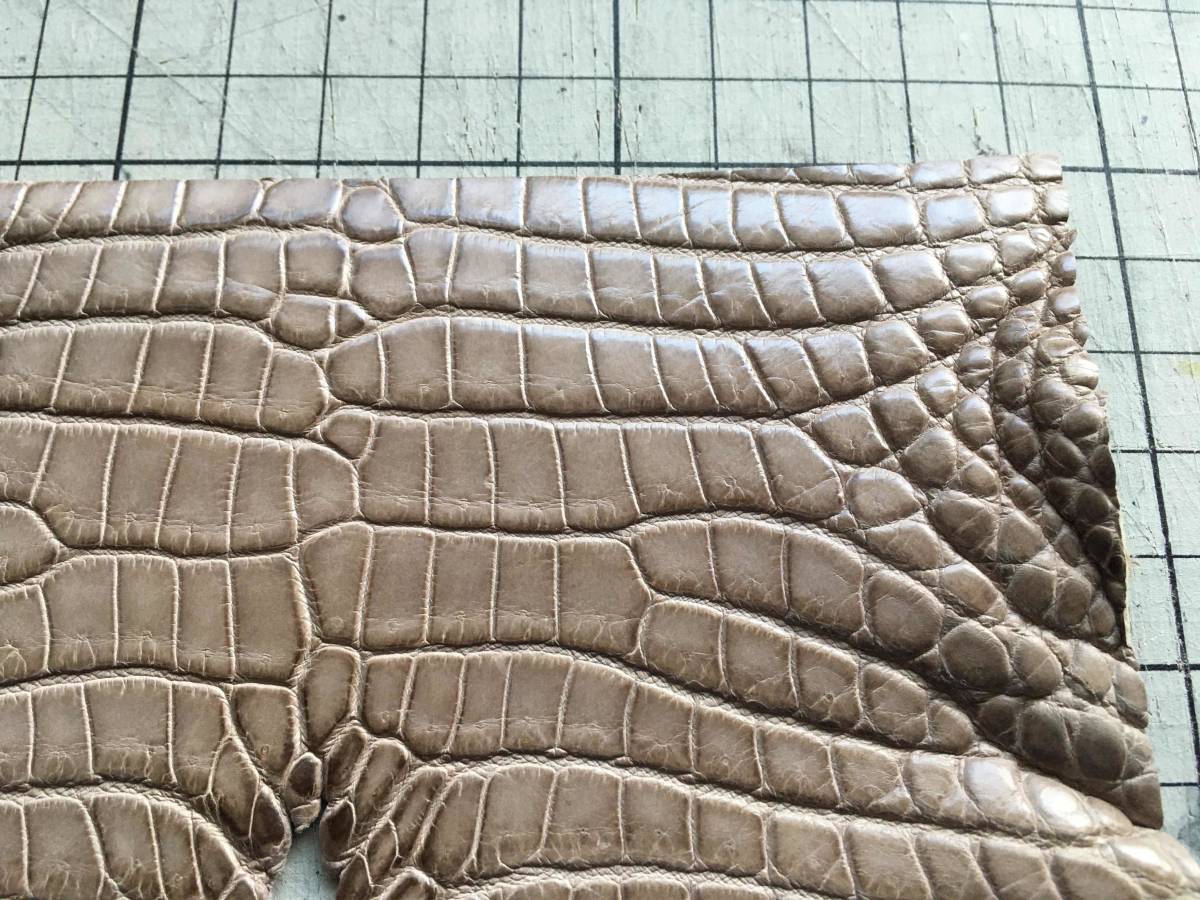 (※ピン跡ございます)★★★キャンペーン★★★ワニ革ハギレ5点(価格問いません)同時ご落札の方限定でお好きな3000円以下ワニ革ハギレ1点無料プレゼントさせて頂きます。⇒5点落札後、おまとめ取引依頼頂き、お支払い後、ご希望のワニ革ハギレの商品番号もしくはURLを取引連絡よりお知らせ下さいませ。★★★最高級ナイルクロコダイルの本ワニ革のハギレになります。マット仕上げのコニャックベージュです。ビッグメゾンも使っているタンナーでかなり腑のクオリティが高いです。レザークラフトのパーツ取り、小物作りにどうぞ。本体裁断後未使用になります。皮革につき、染めムラ、傷、穴などある場合がございます。(※お写真でご確認下さいませ)写真ではなるべく広げていますが、