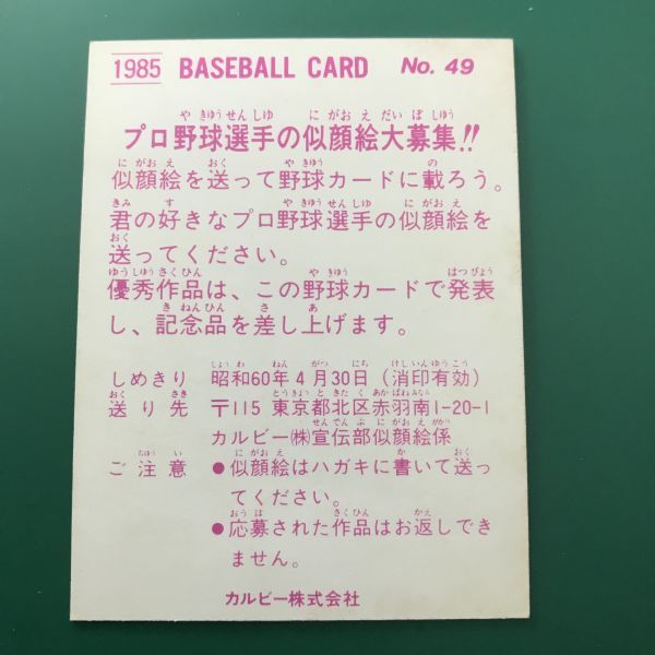 1985年 カルビー プロ野球カード 85年 49番 中日 宇野   【管理NO:3-27】