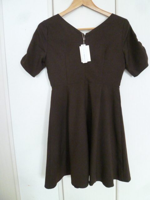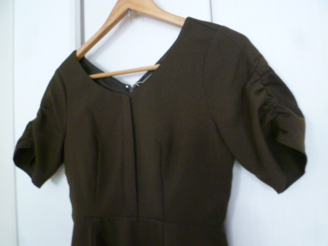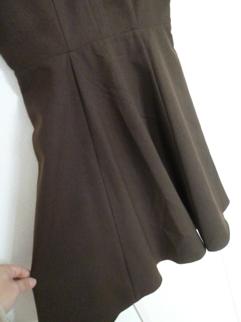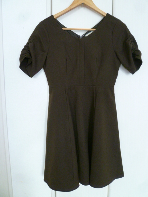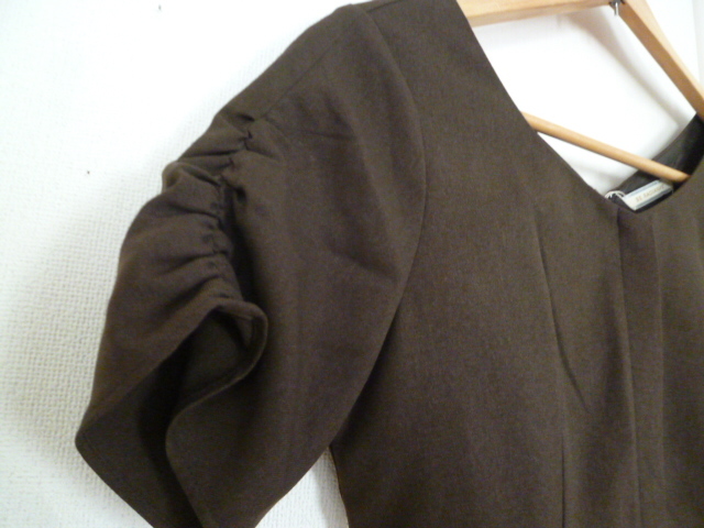 【新品】BE RADIANCE/ビーラディエンス△濃茶くしゅくしゅ袖フレアーワンピースF/ブラウン定価14000円+税半袖ミニ△217