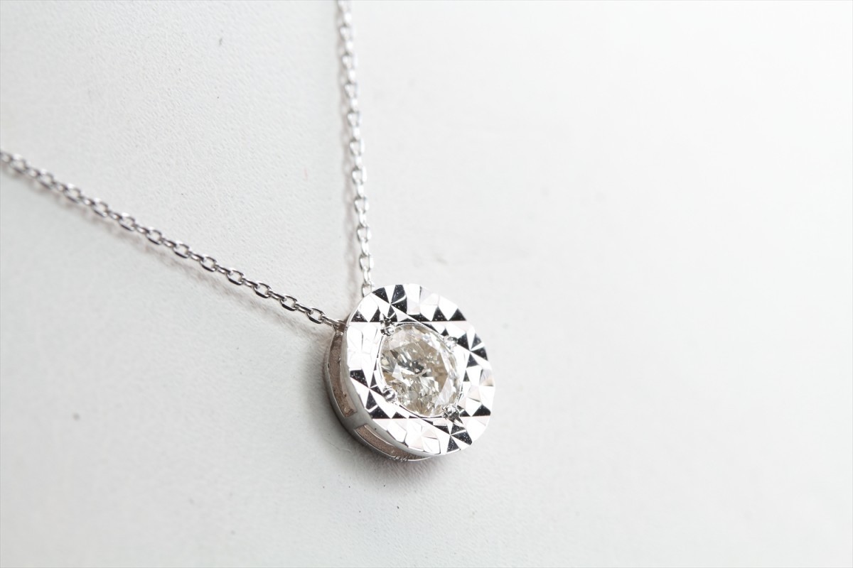 K18WGのカットデザイン枠が一粒ダイヤモンドの輝きをより一層引き立てています。